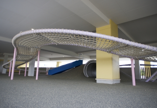 In order to realize this theme, we raised the overall height of the site and placed the nursery, the core of the school building, on the second floor. As a result, a large covered garden was created on the first floor as a piloti, which also allowed for outside activities even when it rained.